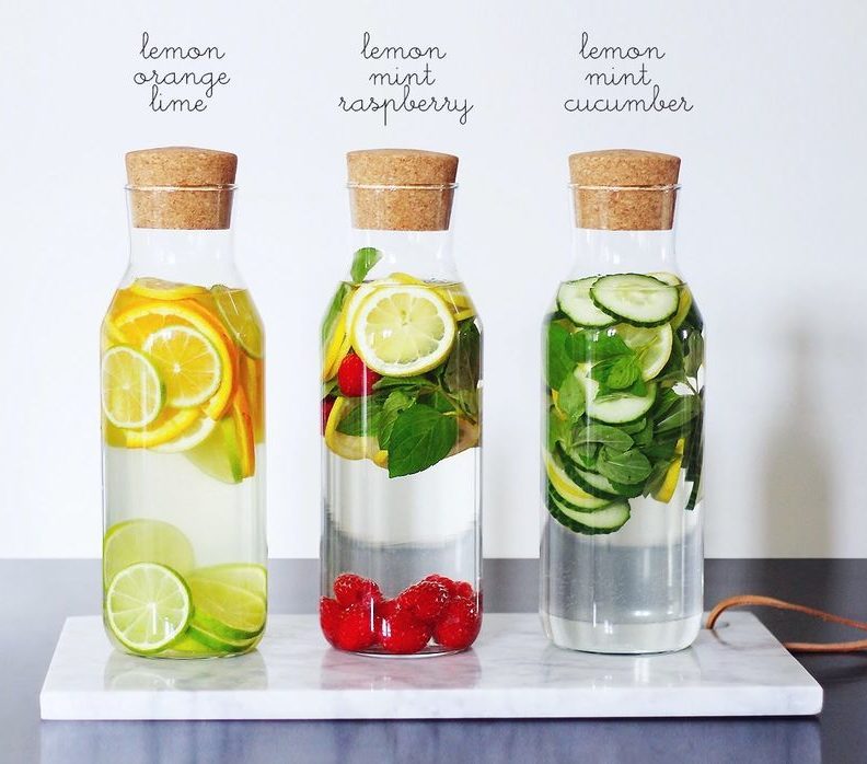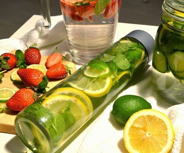 Infusing goodness of natural ingredients into plain water makes “ Detox water”. Natural ingredients could be lemon, cucumber, mint, ginger, berries, or apples. There is no blending or squeezing to extract the pulp. The fruit or veggies are simply steeped in the water to allow the subtle flavours to be absorbed without adding too many calories.